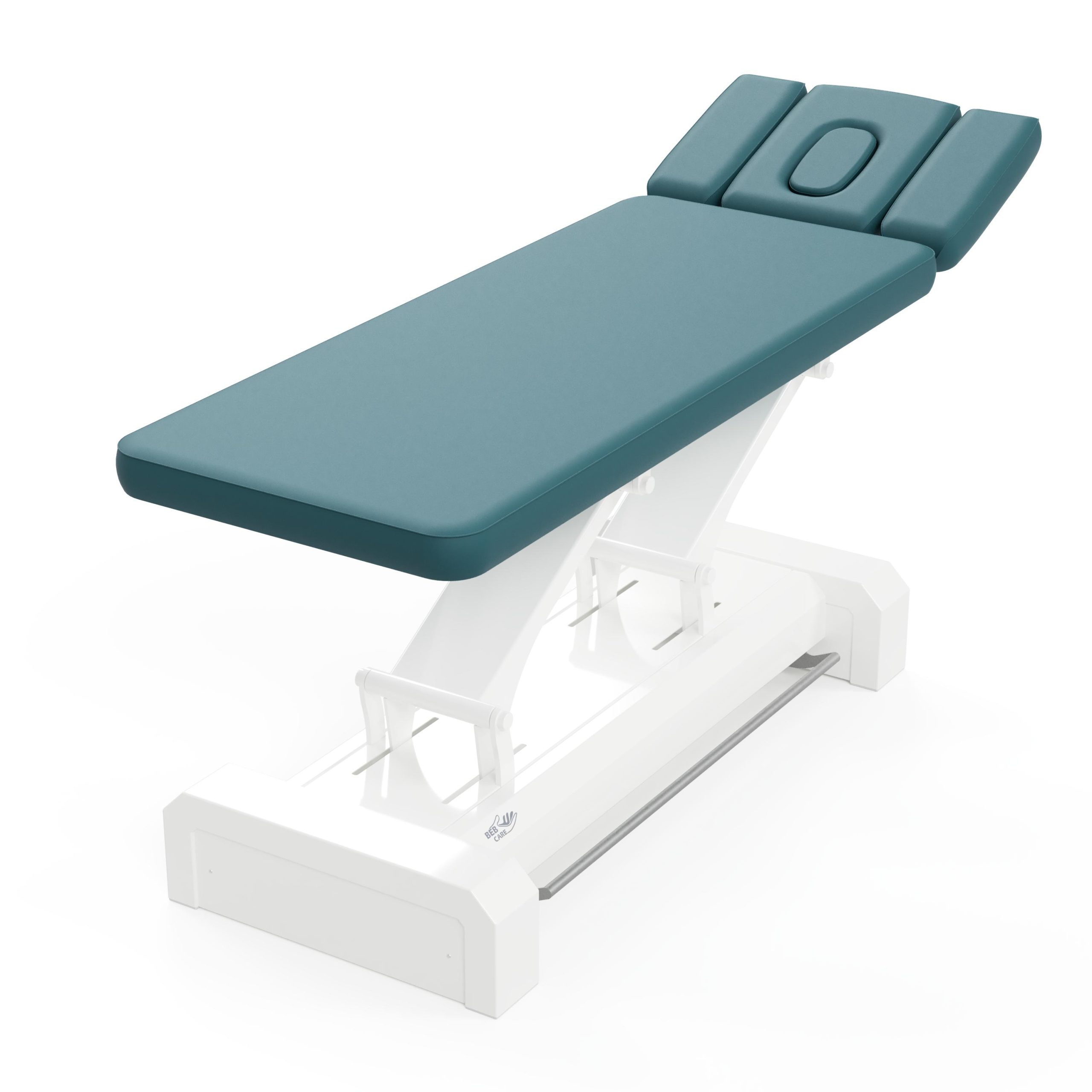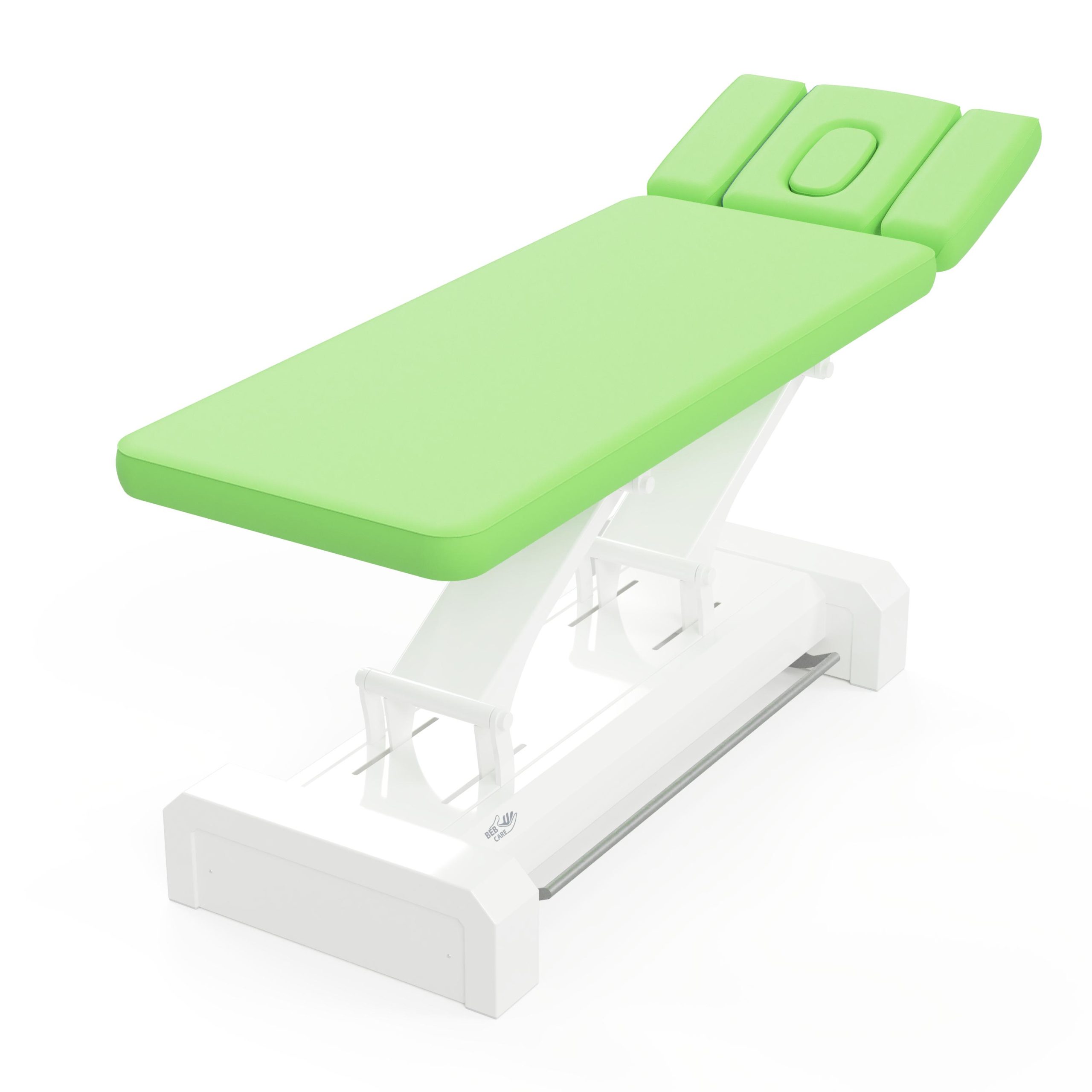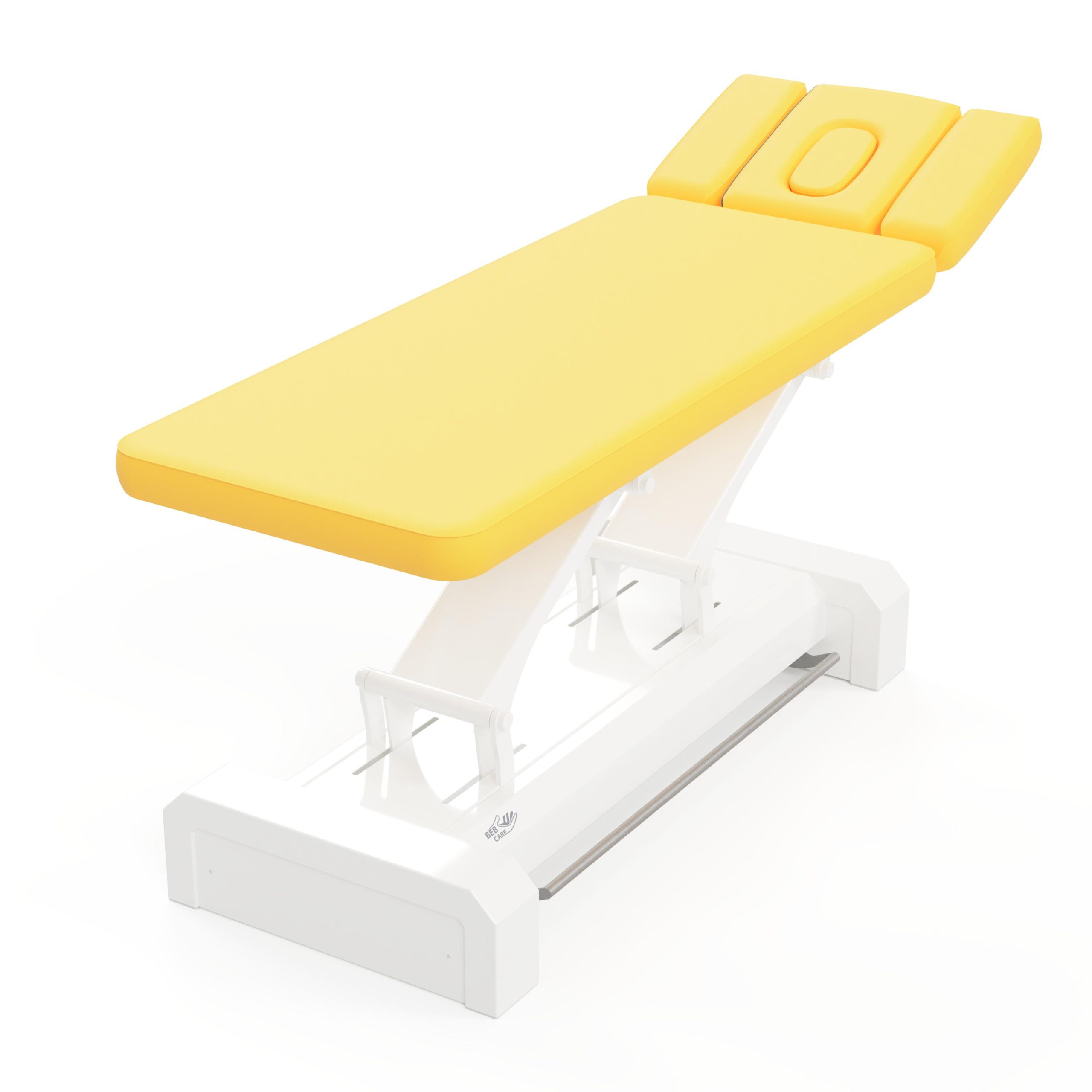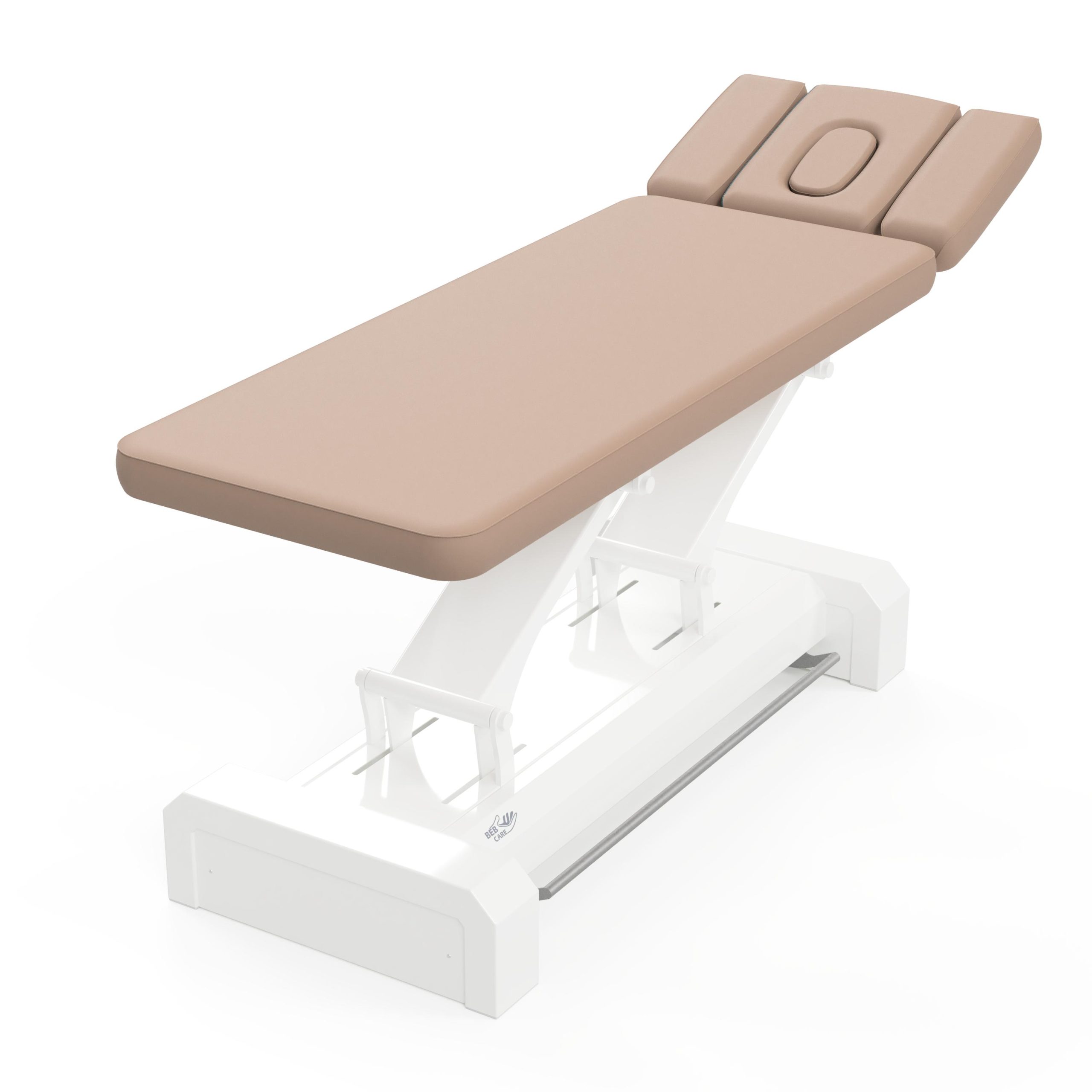 La tappezzeria di 8 cm di spessore offre un'ampia e comoda superficie di appoggio. Ogni modello è dotato di un’apertura facciale, per i trattamenti in posizione prona. Il rivestimento in skay di alta qualità è disponibile in un’ampia varietà di colori e texture.