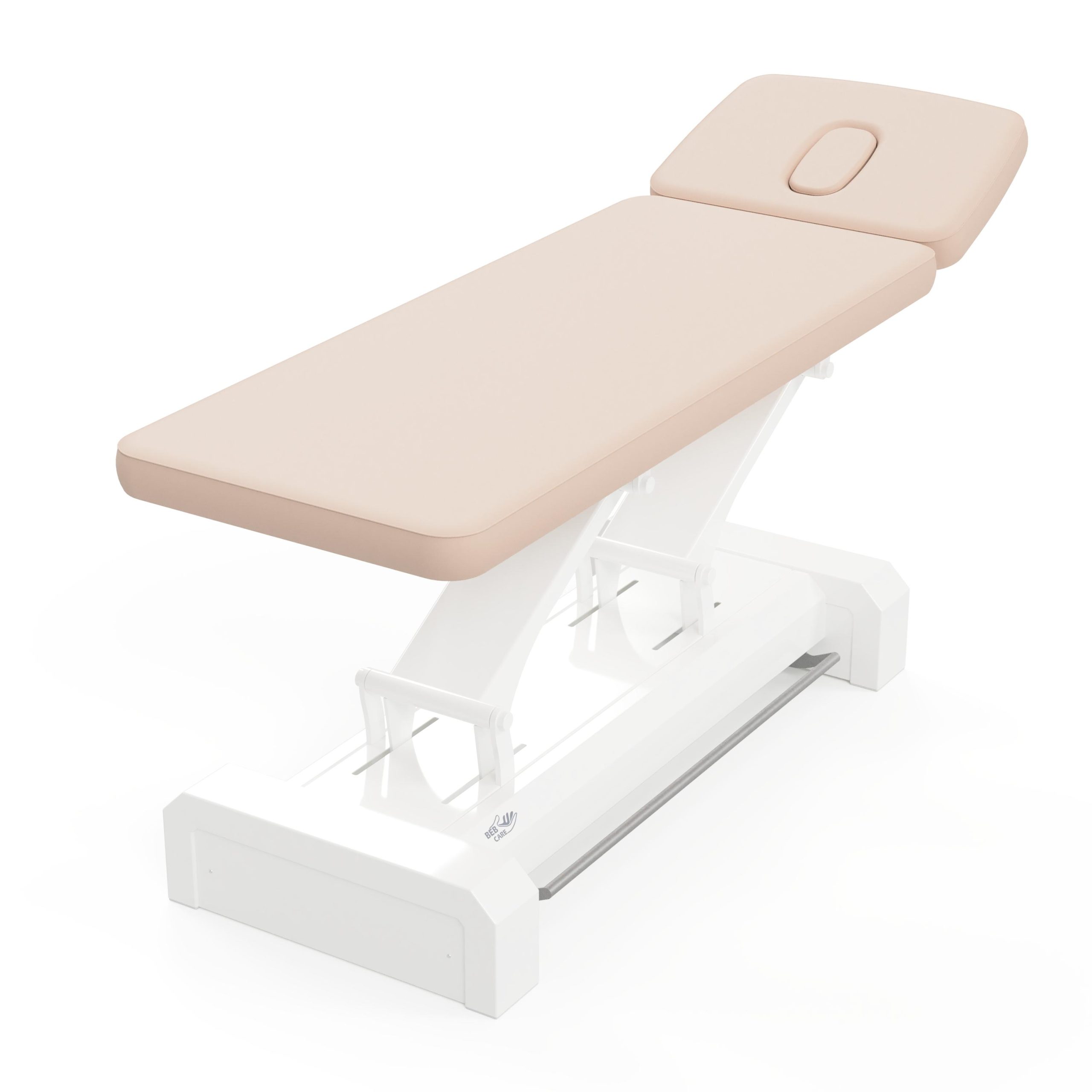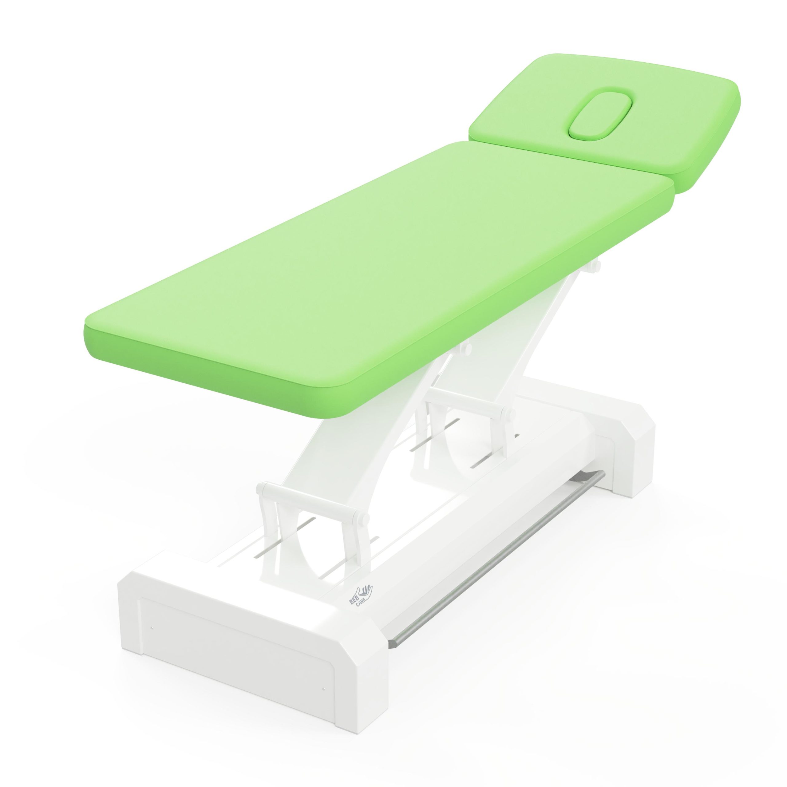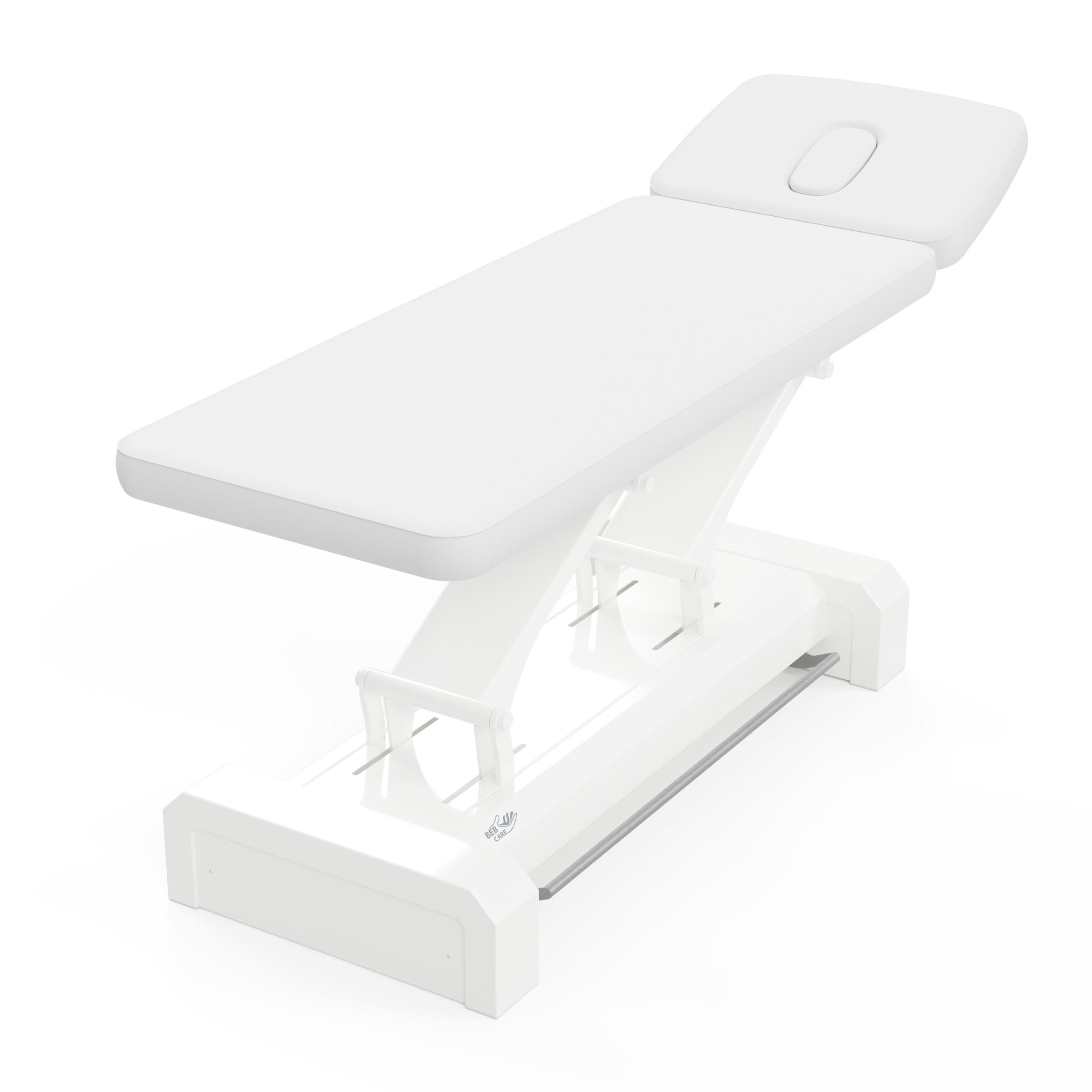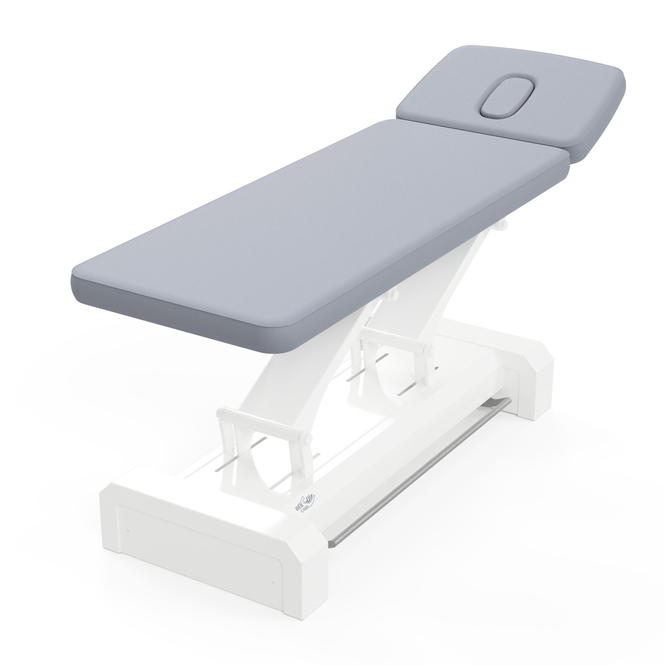 La struttura in acciaio, dal design elegante e razionale, conferisce ai lettini grande stabilità, con capacità di sollevare fino a 250 kg. L’altezza è regolabile elettricamente e può adattarsi perfettamente ad ogni trattamento.