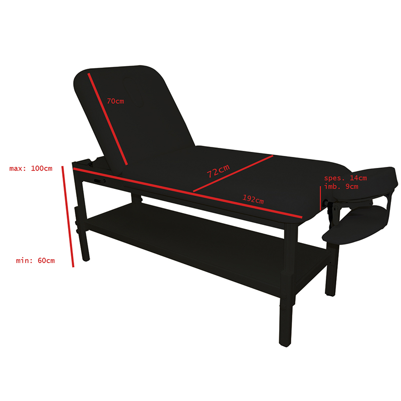 - Personalizzazione: Schienale regolabile in diverse posizioni per adattarsi a ogni trattamento.