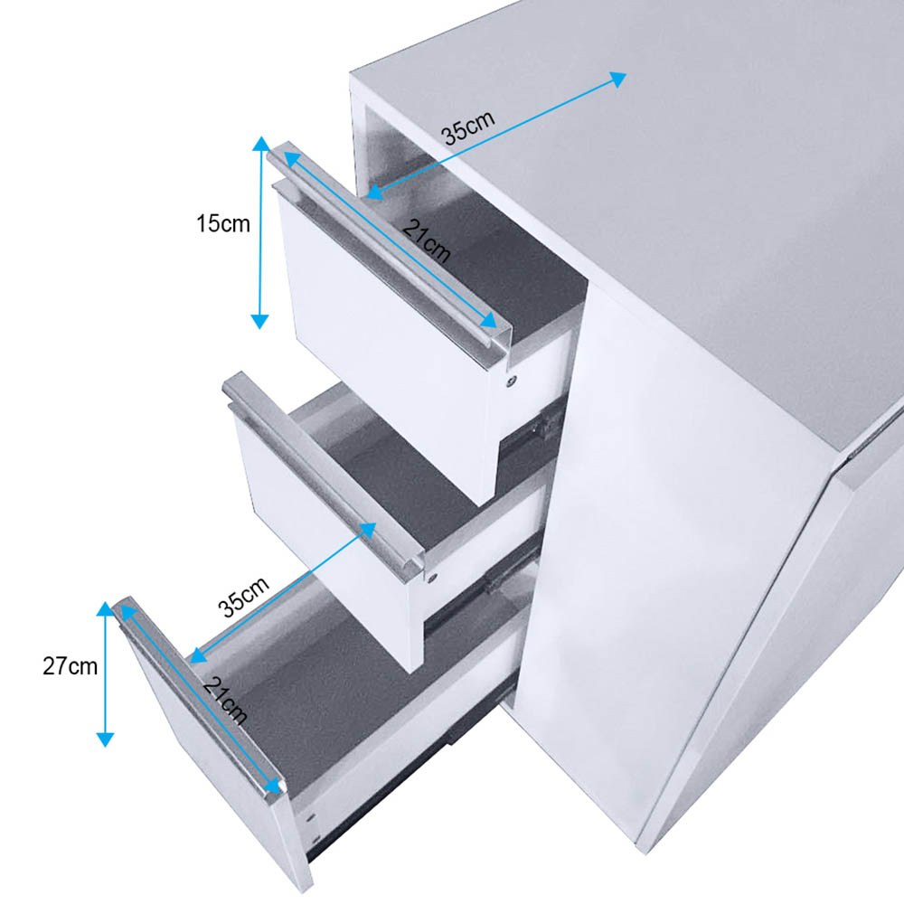 - Cassettiera maggiore: 27 x 21 x 35 cm