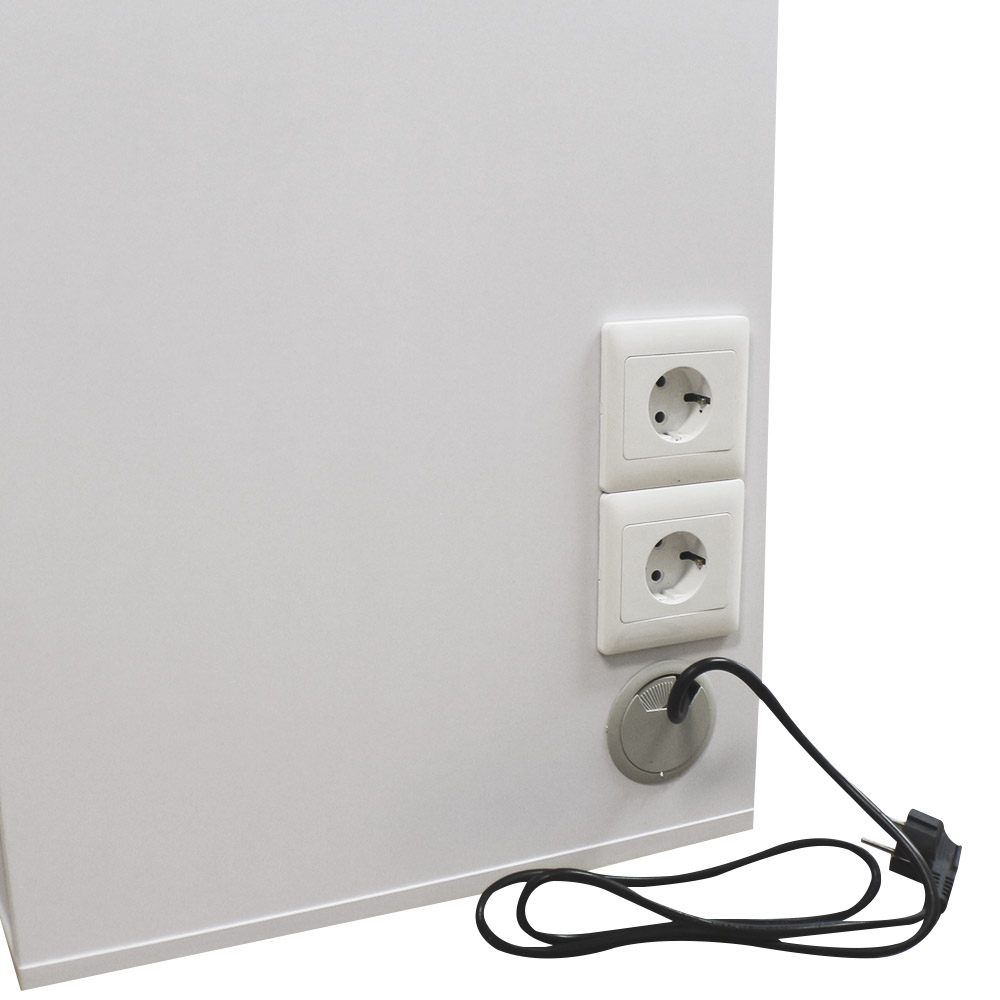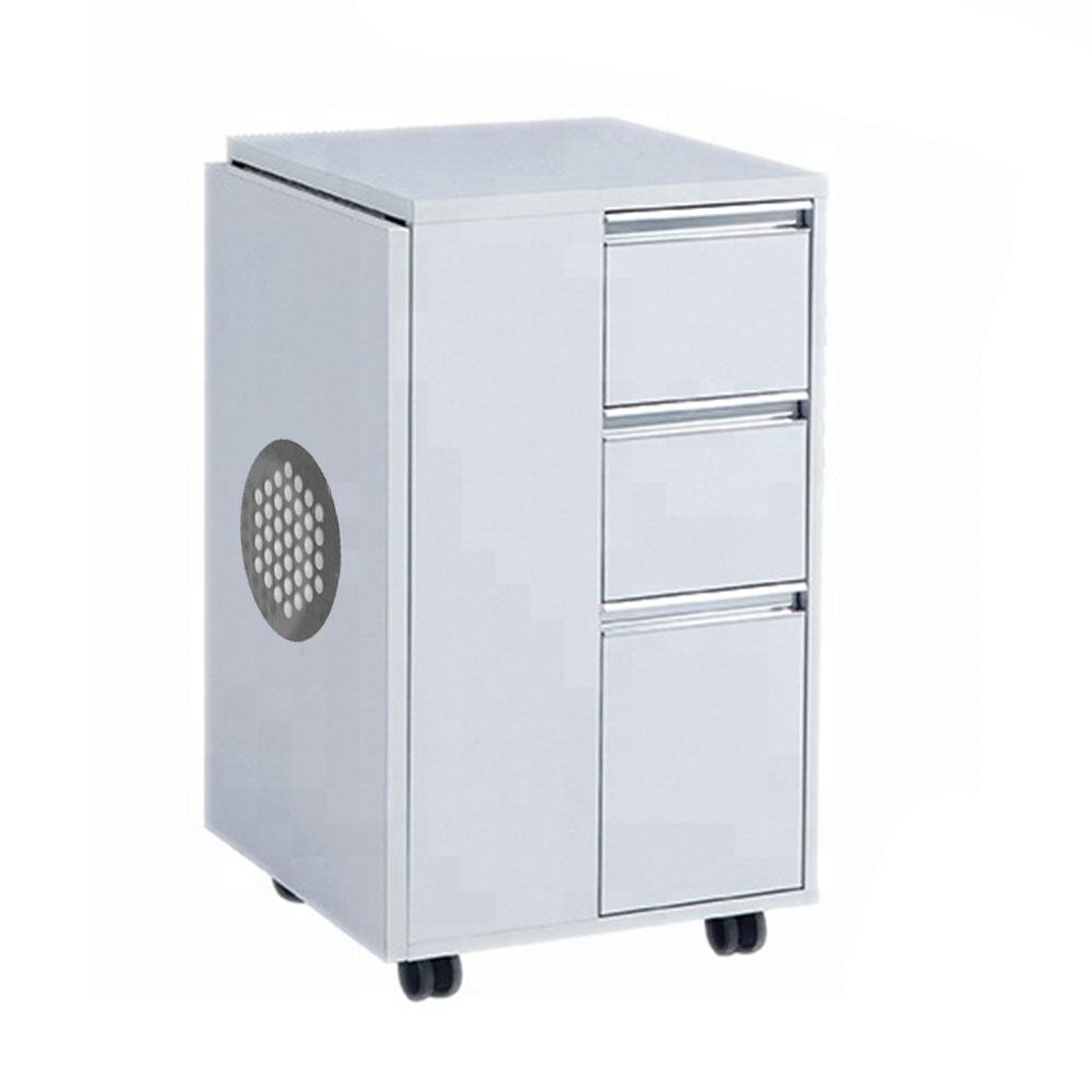 Questo tavolo da manicure MIRA è un modello professionale, ideato per chi ha problemi di spazio per la sua postazione da manicure. Grazie al suo piano reclinabile, infatti, il tavolo di MIRA può richiudersi in un comodo mobiletto a tre cassetti e, quando deve essere utilizzato come tavolo da manicure, si può aprire e posizionare in qualsiasi parte della stanza. I 3 cassetti sono scorrevoli e molto spaziosi. Al centro del tavolo è montato un aspiratore da 50W di nuova generazione, che permette di mantenere pulito il piano d’appoggio durante i trattamenti di manicure. Il piano ha un design sobrio e robusto; vi garantirà una facile mobilità e comodità di approccio alla manicure per il cliente. Monta 4 ruote girevoli con sistema di bloccaggio che gli permettono di essere spostato con facilità in qualsiasi punto della stanza, per poi essere fissato in modo stabile.