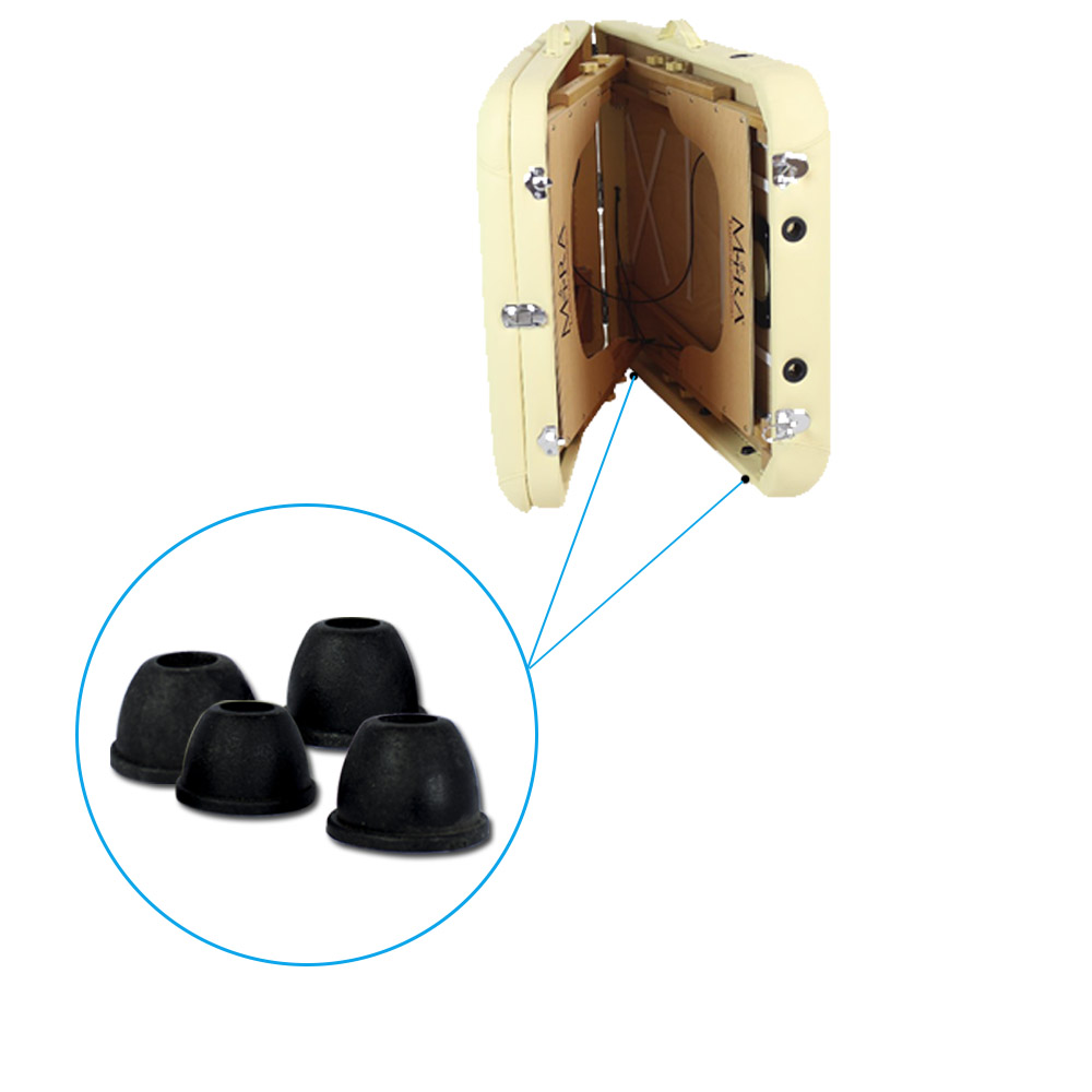 Piedini di ricambio situati sotto all’imbottitura dei lettini da massaggio pieghevoli. Acquistali senza costi aggiuntivi!