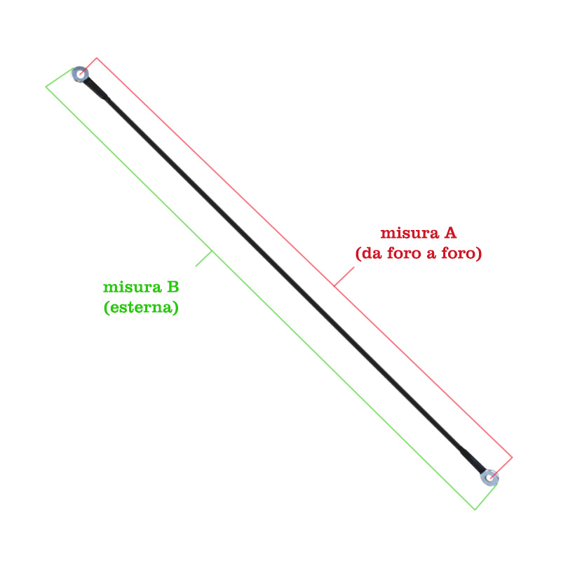 Per garantire la perfetta compatibilità, ti consigliamo di misurare il tuo attuale cavetto partendo dal centro del foro del lato A fino al centro del foro del lato B, come mostrato nelle foto del prodotto.