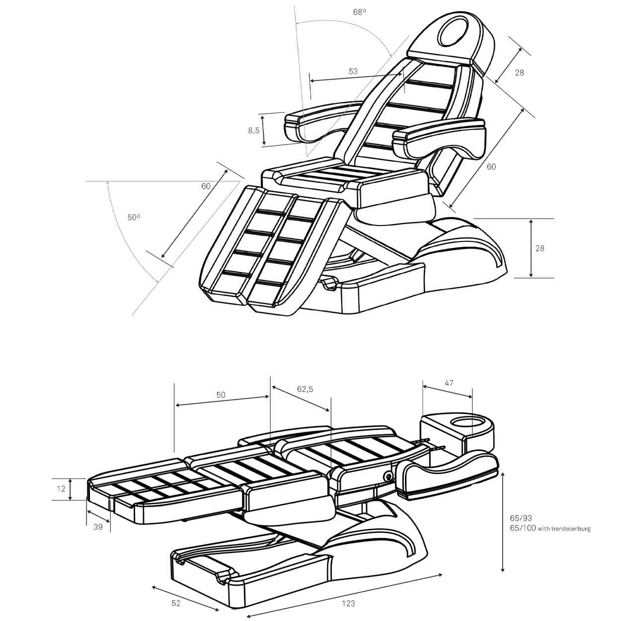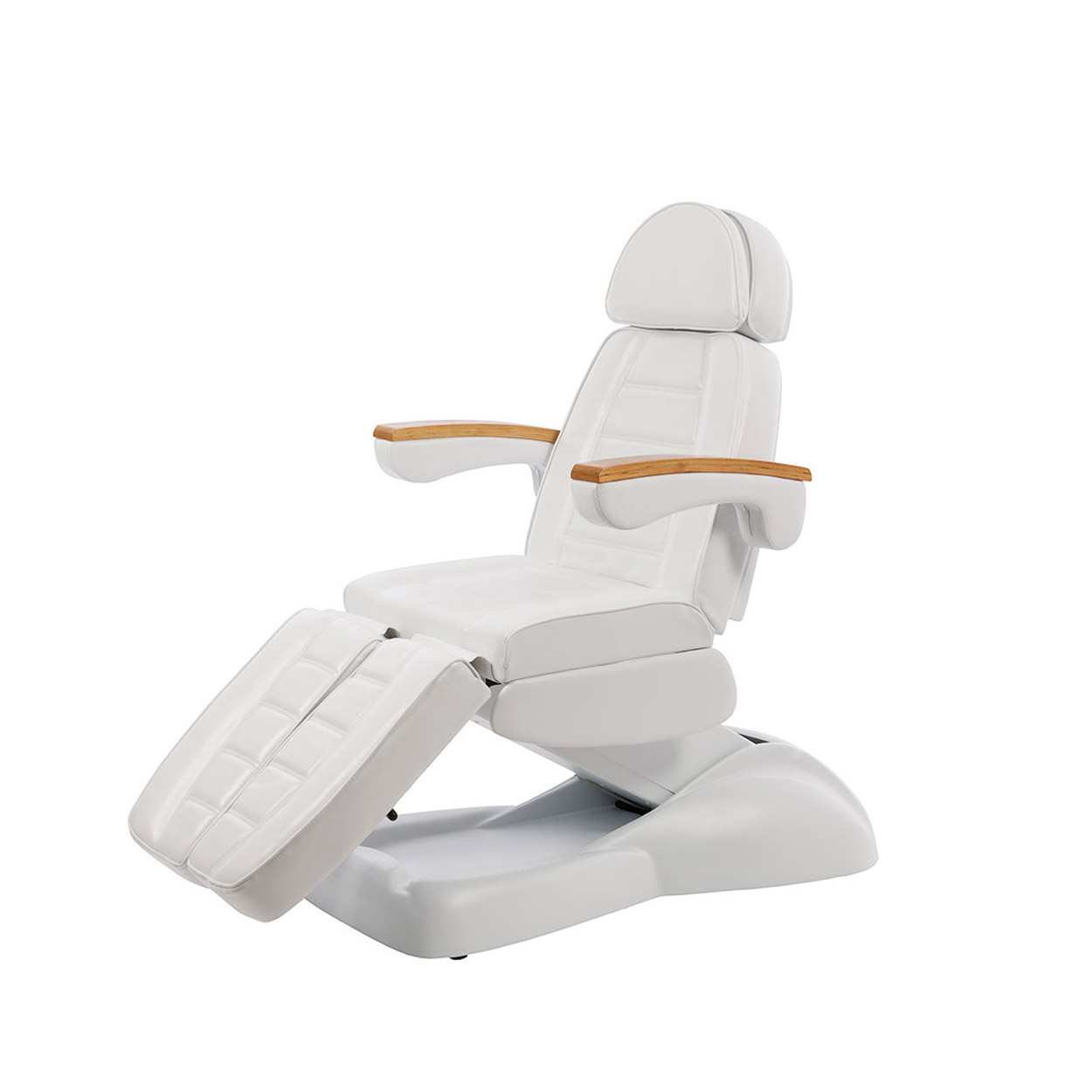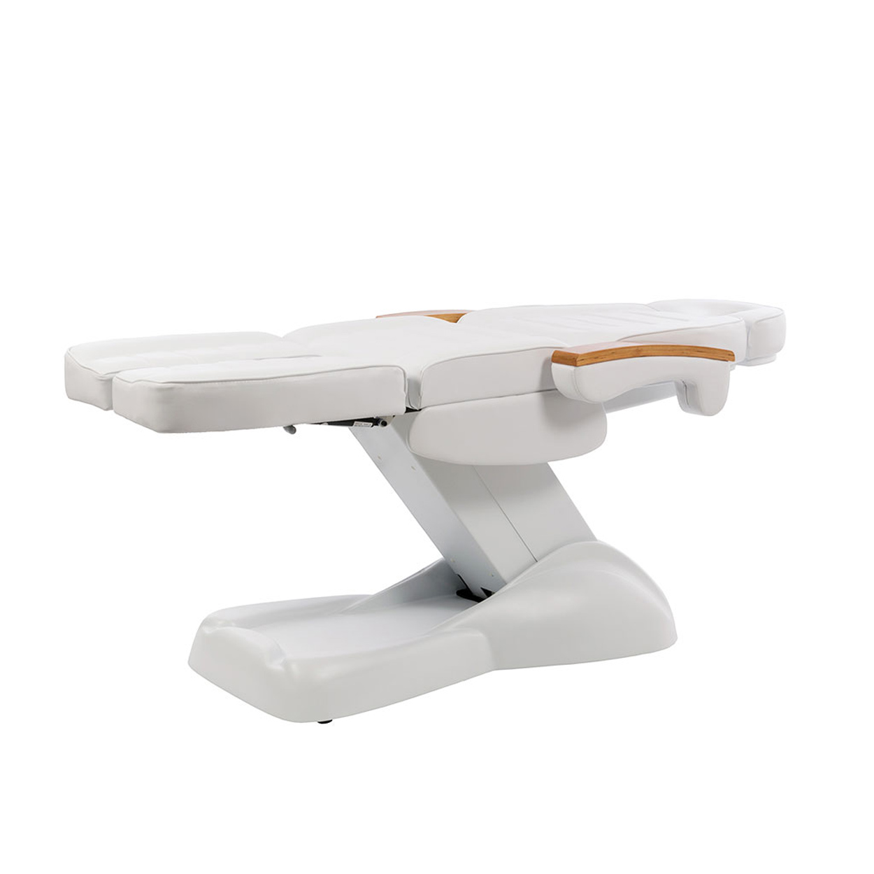 Elegante e comoda, con bordo braccioli in legno. Tre motori per regolarne facilmente il sollevamento e l’inclinazione. Inclinazione fino a 220° per garantirti la massima comodità durante il trattamento.